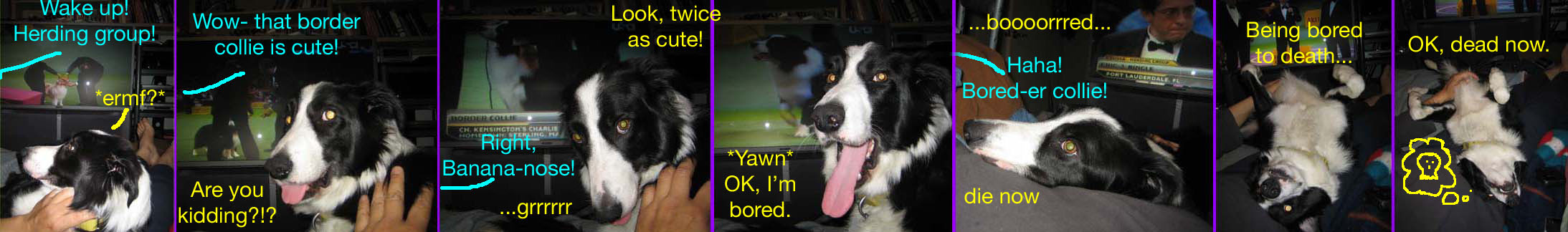 Rondo and I watched the second night of the Westminster dog show. I missed the working group (huskie!), but at least I'd get to see the herding group.