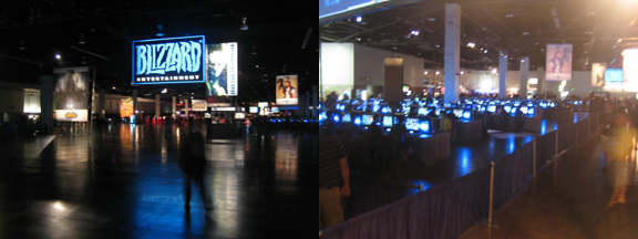 There was plenty of room-- though the halls were very dark (probably to simulate the typical environment of their players-- it had that black-light/basement feel to it). Not too noisy. Pretty cool, actually. Certainly a refreshing break from the jostling of SDCC!