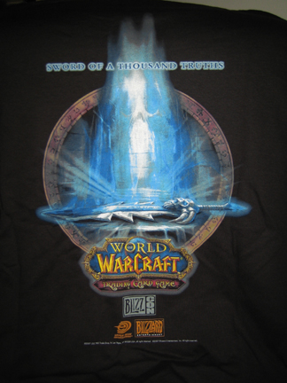 I have to thank [livejournal.com profile] waynekaa profusely for helping Roz and I to get this cool shirt with the South Park tie in! He is a master of ferreting out freebies! We can thank him for the extra posters and oversize WoW collector cards, water bottles, pins and posters, too!
