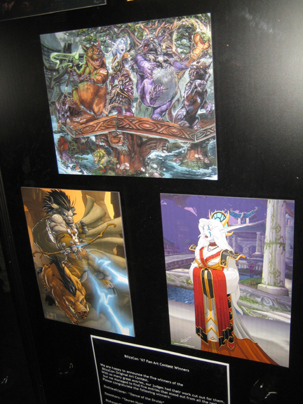 Tons of contests! Here are some examples of the fan art contest-- cute stuff! Contests for everything from dance contests (warcraft in-game dances) and imitating Warcraft voices/sounds and videos created using the Warcraft engine/models. The prizes were usually pretty cool: $$$ Dell laptops, graphic cards/accelerators, two years of Warcraft. Speaking of contests...I was mainly there to enter the costume contest-- but that's for another post!